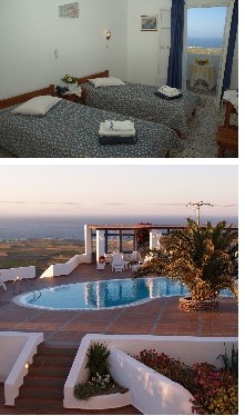Majoitus on Anemomilos-hotellissa, jossa on kaunis uima-allasalue, josta avautuu upeat näkymät merelle.